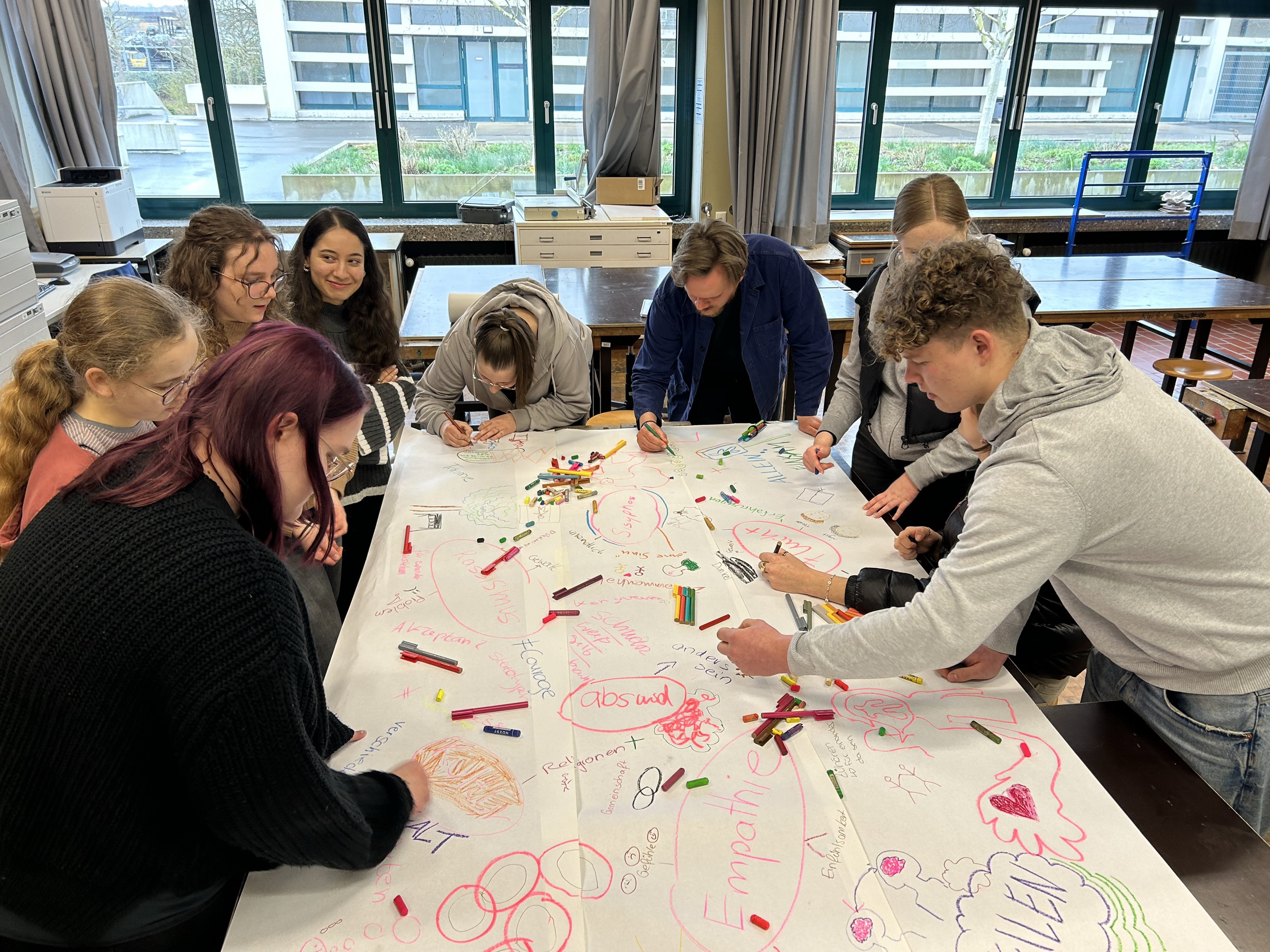Am 12.03.24 wird im Anna-Siemsen-Berufskolleg der Theaterabend A Mission For Sisyphos mit dem "Pianisten aus den Trümmern" Aeham Ahmad und den beiden Schauspielern Martin Bretschneider und Atdhe Ramadani gezeigt. In der darauffolgenden Woche werden Schüler*innen in Workshops mit Ahmad, Ramadani und Bretschneider und mit der syrischen Künstlerin Tahani Munawar die Themen Flucht, Migration und Rassismus künstlerisch bearbeiten. Dieses Programm zur politischen Bildung im Zusammenspiel mit Theater wird von der Landeszentrale für politische Bildung gefördert.