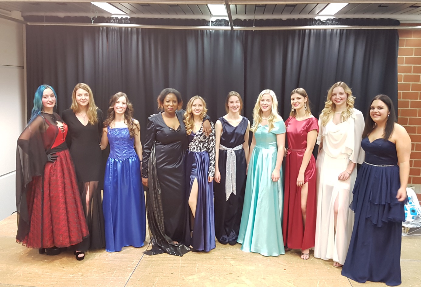 Für diese Aufgabe hatte die Klasse 3 Wochen Zeit. Zunächst setzte man sich mit den gesellschaftspolitischen Ereignissen der 40er Jahre auseinander. Anschließend informierten sich die Schülerinnen über die Mode dieser Zeit, die von Hollywood-Stars wie Greta Garbo, Rita Hayworth oder Veronica Lake getragen wurde. Davon inspiriert, setzten die Schülerinnen ihre eigenen Ideen gestalterisch um, entwickelten Schnitte und fertigten anschließend die Abendkleider. Abschließend wurden die Ergebnisse vor den anderen BTA-Klassen und den Lehrern präsentiert.