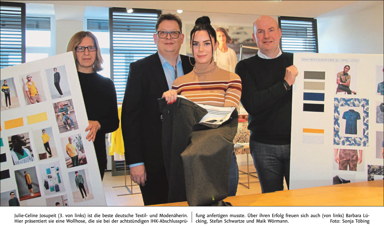 Brax-Auszubildende Julie-Celine Josupeit ist Deutschlands beste Textil- und Modenäherin Von Sonja Tööbing