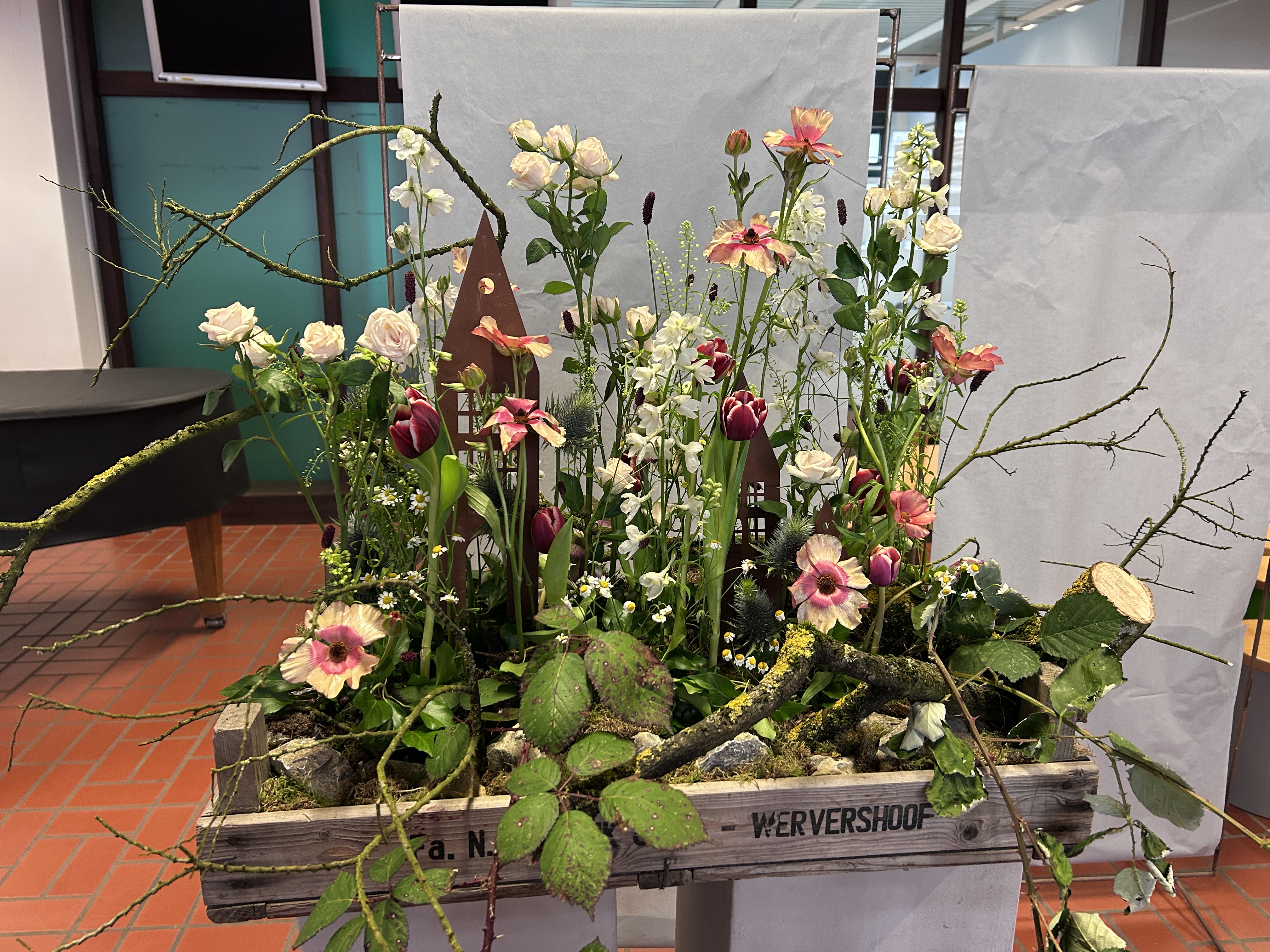 Mit viel Kreativität und handwerklichem Geschick entstanden einzigartige Gestecke, die die Schönheit und Vielfalt der Natur widerspiegeln. Dabei kombinierten die Nachwuchstalente unterschiedlichste Materialien: heimische Blumen trafen auf zarte Blüten und auf robuste Naturmaterialien wie Holz, Moos oder Stein. So entstanden harmonische Arrangements, die symbolisch für das Zusammenspiel verschiedener Lebensräume stehen.