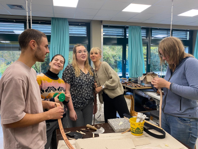 In dem zweiwöchigen Projekt der Oberstufe der Landesfachklasse für Sattler treffen die Herforder Schülerinnen und Schüler auf die Täschnerklasse aus dem französischen Montbard, sie lernen hier die landestypischen Fertigungstechniken im Bereich der Sattlerei kennen. „Im Mai waren wir mit unserer Klasse in Frankreich, haben dort die Techniken kennengelernt. Nun haben wir die französische Klasse bei uns in Herford zu Gast“, sagt Prescher. Und während der französische Sattler-Nachwuchs in einer Jugendherberge in Bielefeld untergebracht ist, haben die Herforder Schüler des Anna-Siemsen-Berufskollegs in Montbard im Internat gewohnt.