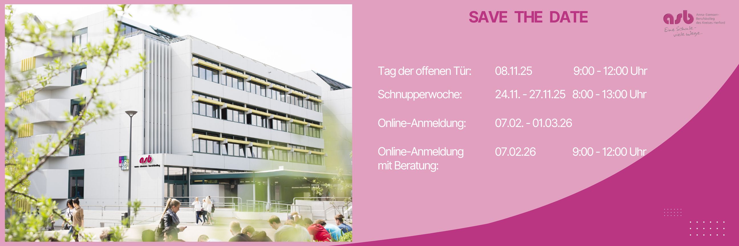 Wir freuen uns, dass Sie Interesse an unseren Bildungsgängen am Anna-Siemsen-Berufskolleg haben. Um sich verbindlich für die Schnuppertage vom 24.11. - 27.11.2025 von 08:00 - 13:00 Uhr anzumelden, klicken Sie bitte auf das Bild, um auf das Anmeldeformular zu gelangen und füllen Sie bitte die folgenden Fragen vollständig aus!